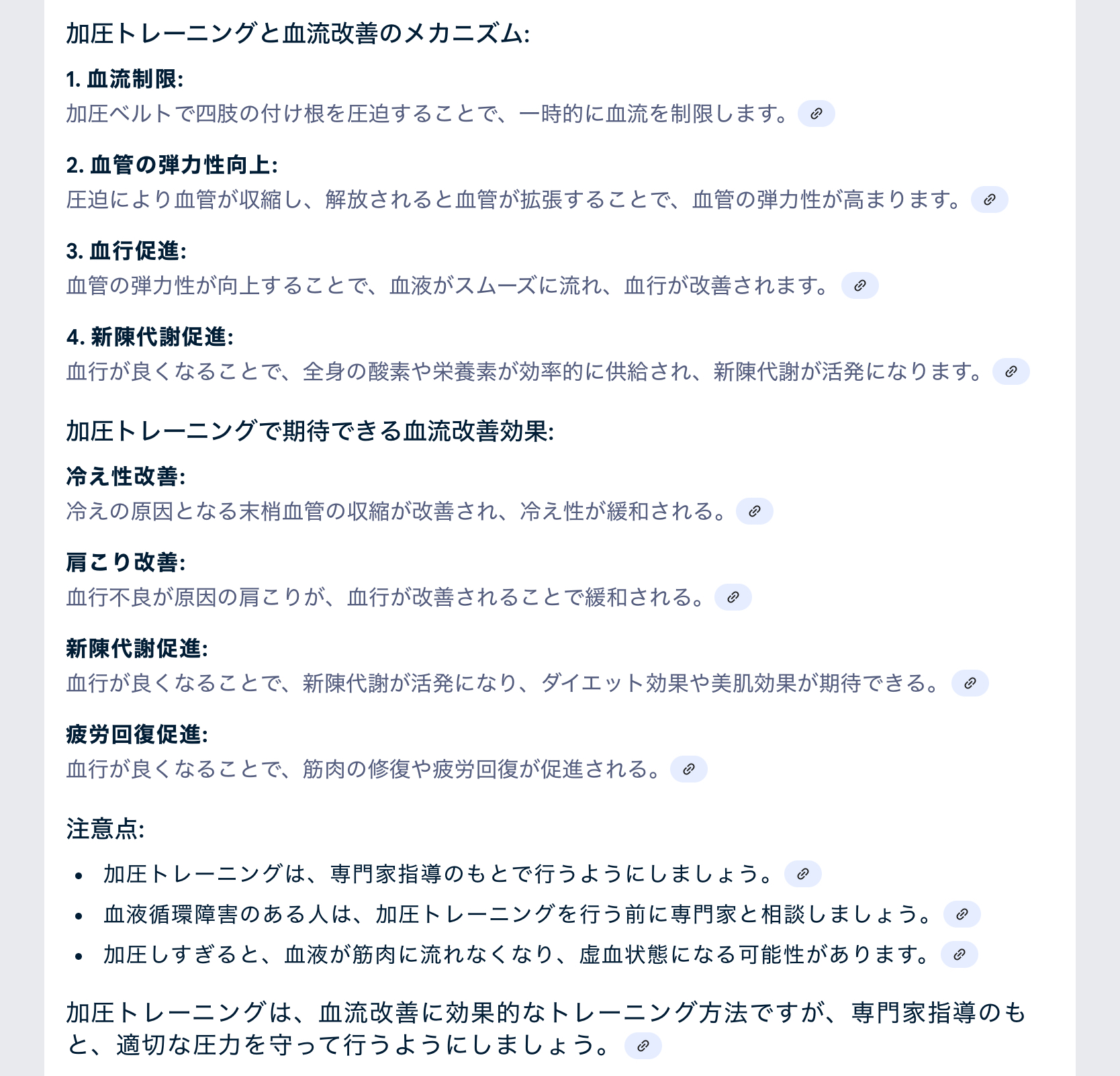 ・ 血液循環障害のある人は、加圧トレーニングを行う前に専門家と相談しましょう。